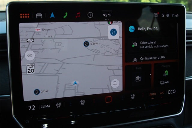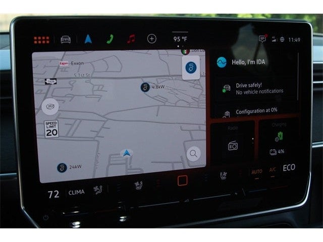 - Radio: Discover Pro Max w/Touchscreen Navigation -inc: 12.9 inch touchscreen multi-function center display w/backlit sliders, FM/HD Radio, WMA/MP3/FLAC media player w/voice control, 8-speaker sound system plus center speaker (9 speakers total), Bluetooth® connectivity (for compatible devices), SiriusXM w/360L (w/3-month free trial subscription; must accept SiriusXM terms), App-Connect smartphone integration (w/Apple CarPlay, Android Auto and MirrorLink) via USB, wireless App-Connect smartphone integration (for compatible devices) w/multi-phone pairing capability, capability for in-vehicle 4G LTE enabled Wi-Fi (cellular data plan required; includes limited trial), capability for VW Car-Net services (capabilities for certain services vary; requires enrollment or subscription) and Qi wireless inductive charger (for compatible mobile phones and accessories) in front row
