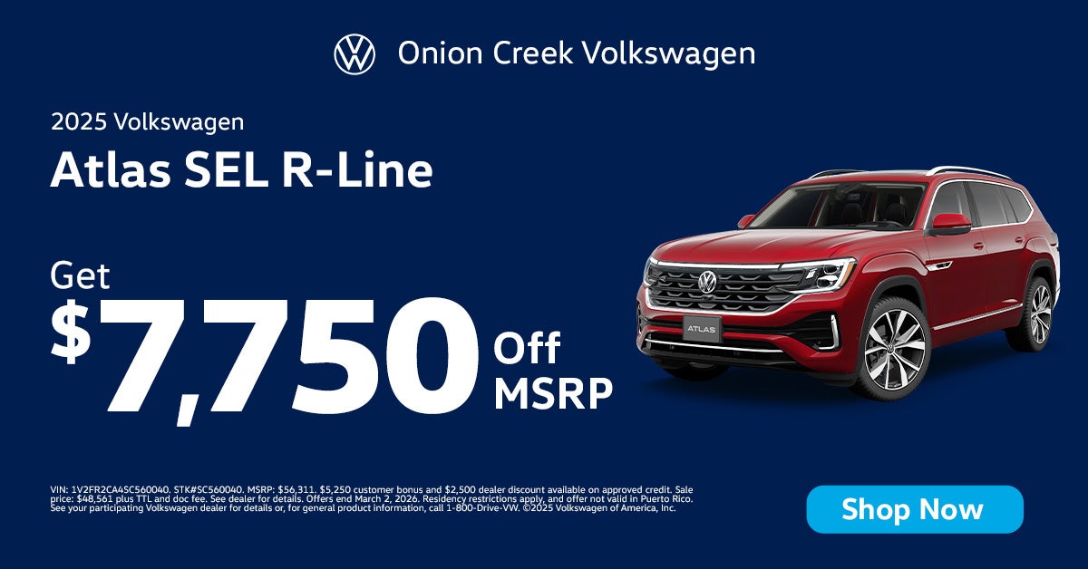 VIN: 1V2FR2CA4SC560040. STK#SC560040. MSRP: $56,311. $5,250 customer bonus and $2,500 dealer discount available on approved credit. Sale price: $48,561 plus TTL and doc fee. See dealer for details. Offers end March 31, 2026. Residency restrictions apply, and offer not valid in Puerto Rico. See your participating Volkswagen dealer for details or, for general product information, call 1-800-Drive-VW. ©2025 Volkswagen of America, Inc.