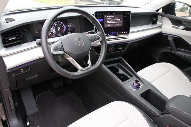 - Radio: MIB4 Composition Media Touchscreen AM/FM -inc: WMA/MP3/FLAC player w/USB, 12.9" touchscreen multi-function center display w/backlit sliders, voice control, 6 speakers + center speaker (7 speakers total) sound system, capability for in-vehicle 4G LTE enabled Wi-Fi (cellular data plan required; includes limited trial), capability for VW Car-Net services (capabilities for services vary; requires enrollment or subscription), Bluetooth® connectivity (for compatible devices), SiriusXM w/360L (w/3-month free trial subscription; 360L services require acceptance of Car-Net terms), App-Connect smartphone integration (w/Apple CarPlay, Android Auto and MirrorLink) via USB, wireless App-Connect smartphone integration (for compatible devices) w/multi-phone pairing capability, 45W fast charging (for compatible mobile phones and accessories) via USB in both rows and Qi wireless inductive charger, cooled, up to 15W (for compatible mobile phones and accessories)